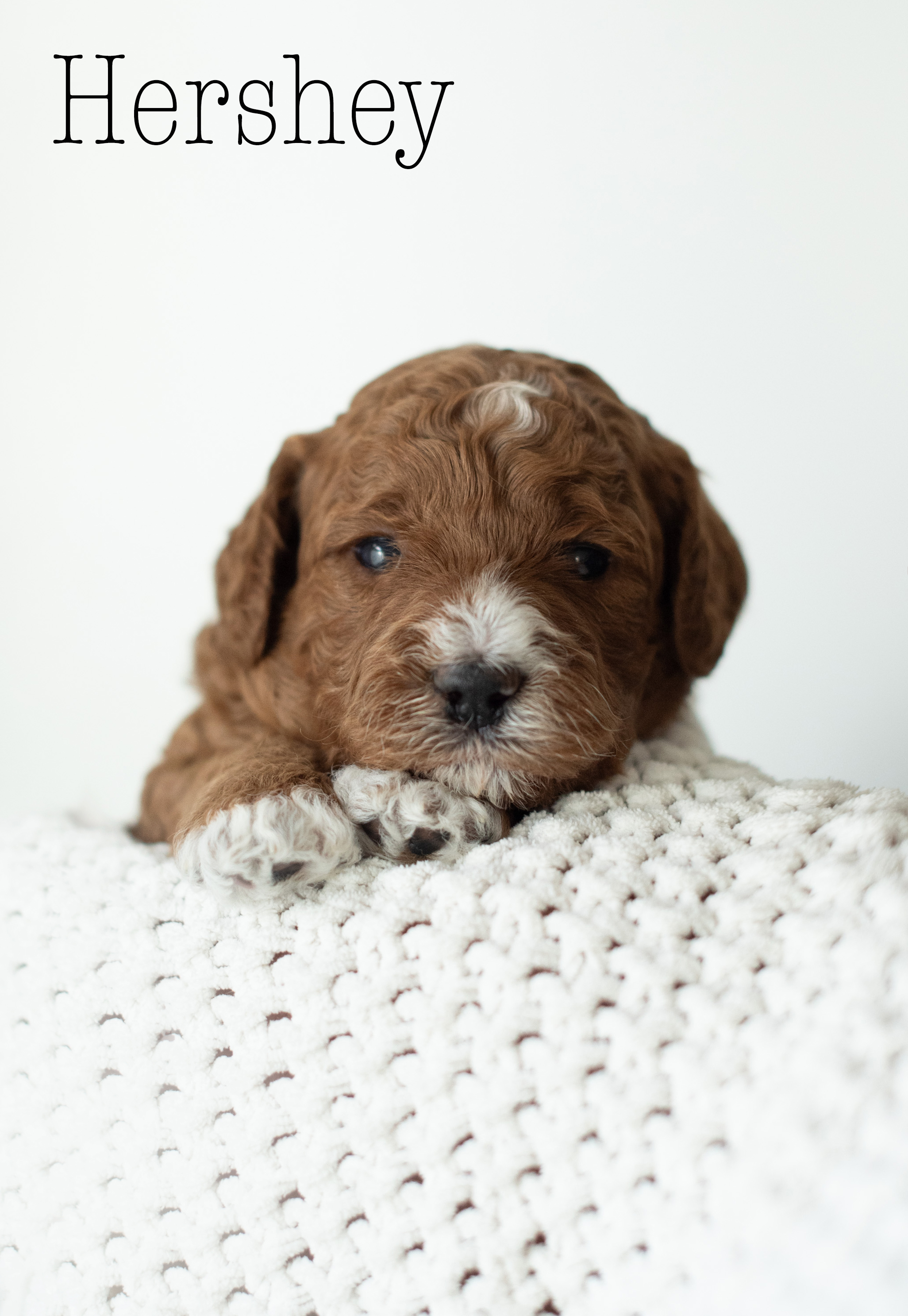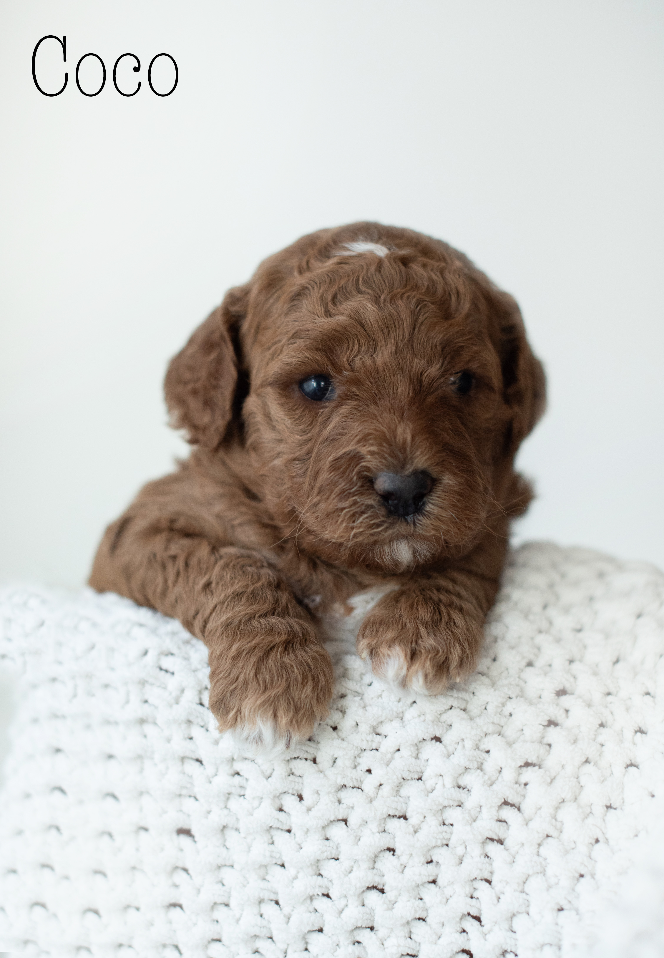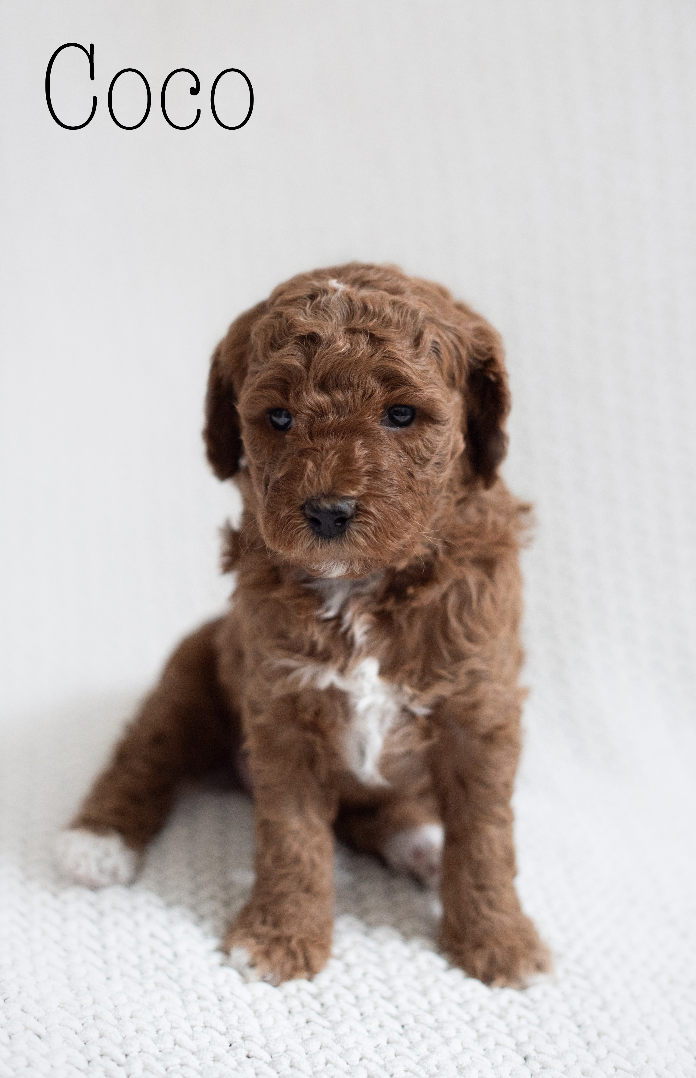 Our Spring 2026 red Moyen poodle litter with Maisie + Winston arrived 1/30/26! We have two poodle girls and three poodle boys. Estimated size will be around 20-25lbs. We have one poodle puppy still available in this litter- Chip (male). Puppies will be ready to go home at 8 weeks old; March 27th 2026.
